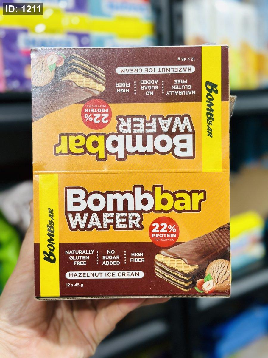 علبه ويفر بومبار بنكهه ايس كريم البندق والشوكلاته22%بروتين غني بالألياف بدون سكر وخالي من الجلوتين ٤٥غم