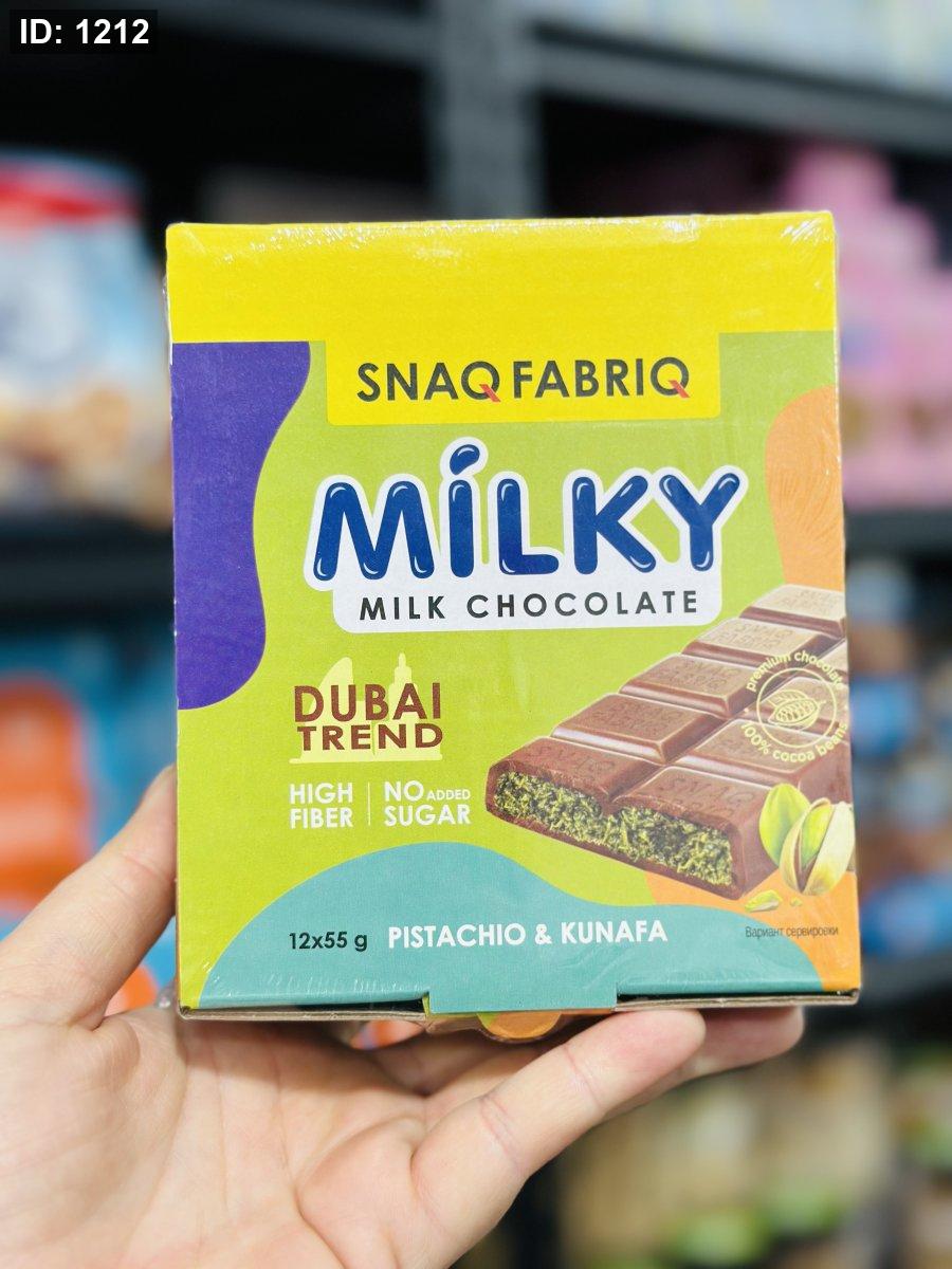 كرتونه شوكلاته دبي سناك فابرك بحشوه البستاشيو وعجينه الكنافه المقرمشة بدون سكر مضاف 55غم