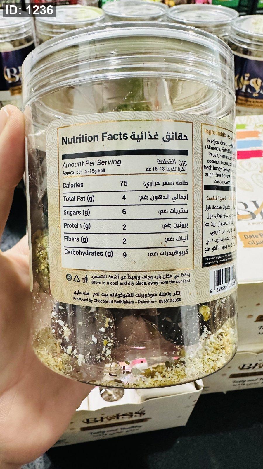 سناك صحي لذيذ ومشبع خالي من السكر المضاف والمواد الحافظه مصنوع من اجود أنواع التمر الطازه مع الشوكلاته البلجيكية والمكسرات المحمصه