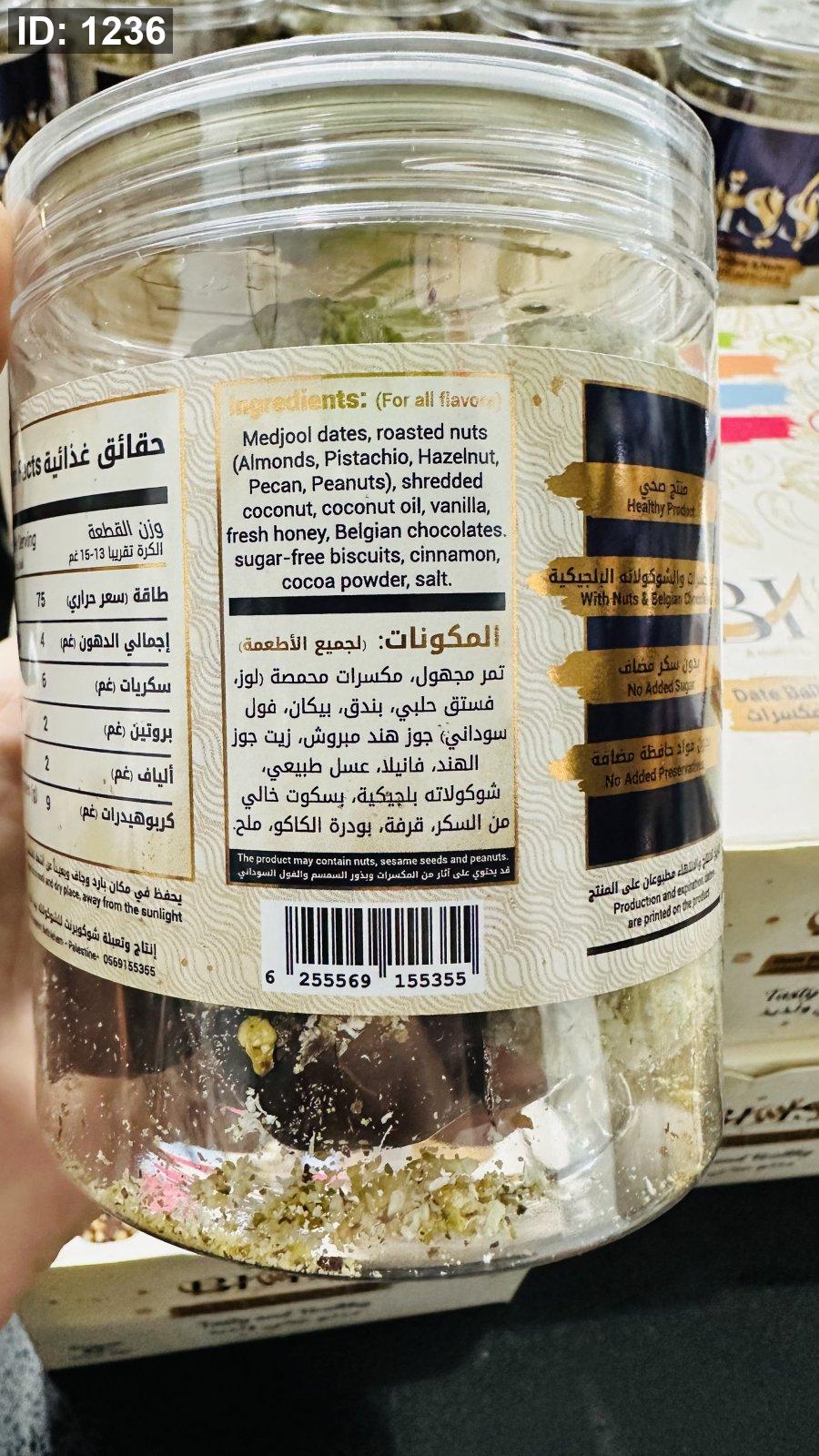 كرات التمر بالشوكلاته البلجيكية والمكسرات بدون سكر مضاف بدون مواد حافظه300غم