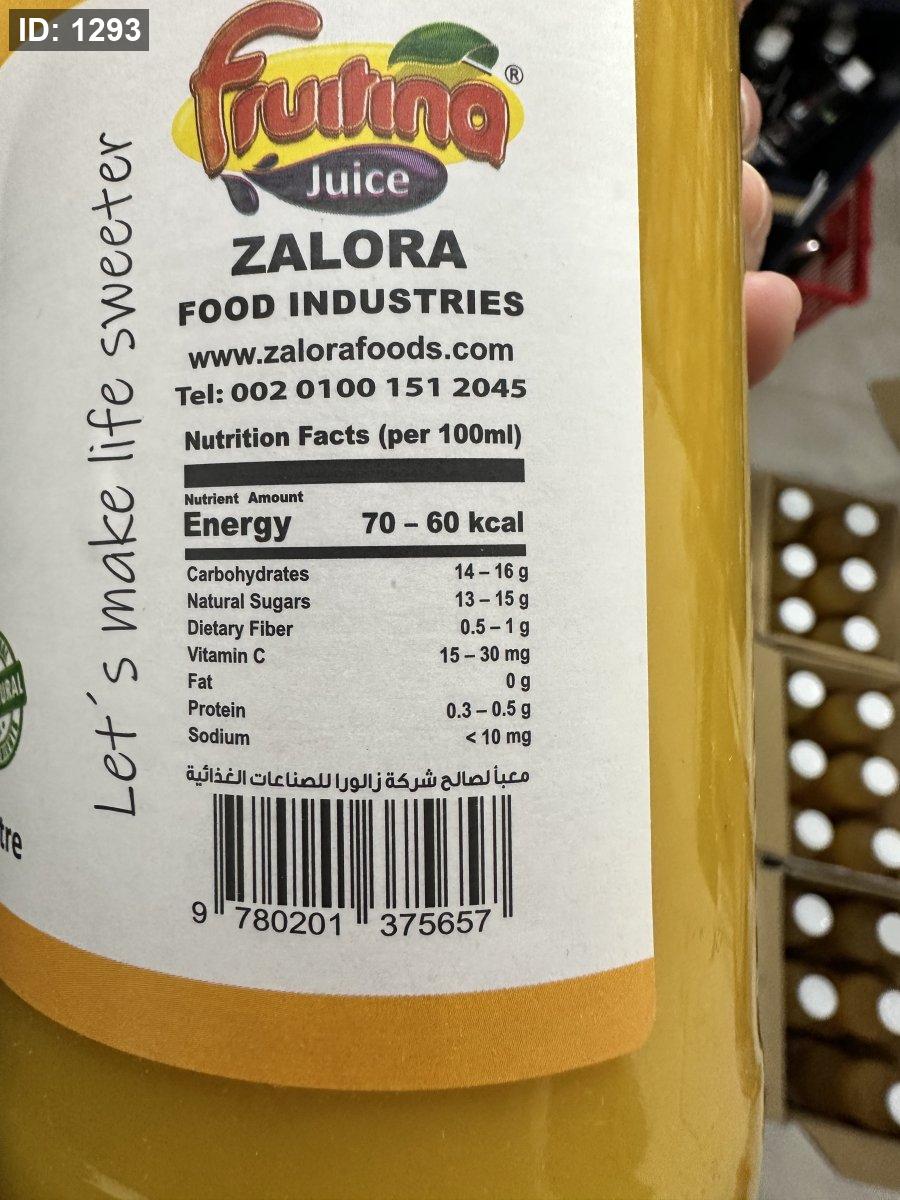 عصير fruitina طبيعي بطعم البرتقال بالستيفيا حجم لتر