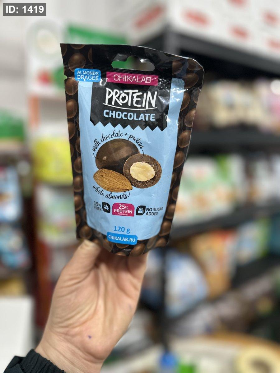 دراجيه لوز بشوكلاته الحليب 19%الياف 25%بروتين بدون سكر مضاف 120غم