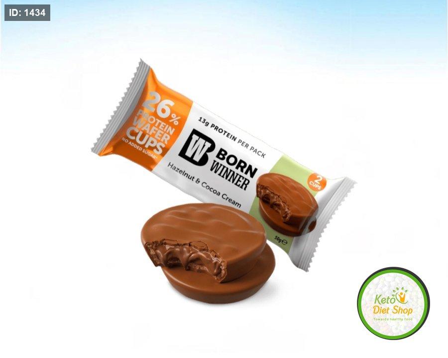 ويفر cups بورن وينر بحشوة كريمه البندق والكاكاو 26٪بروتين بدون سكر 50غم