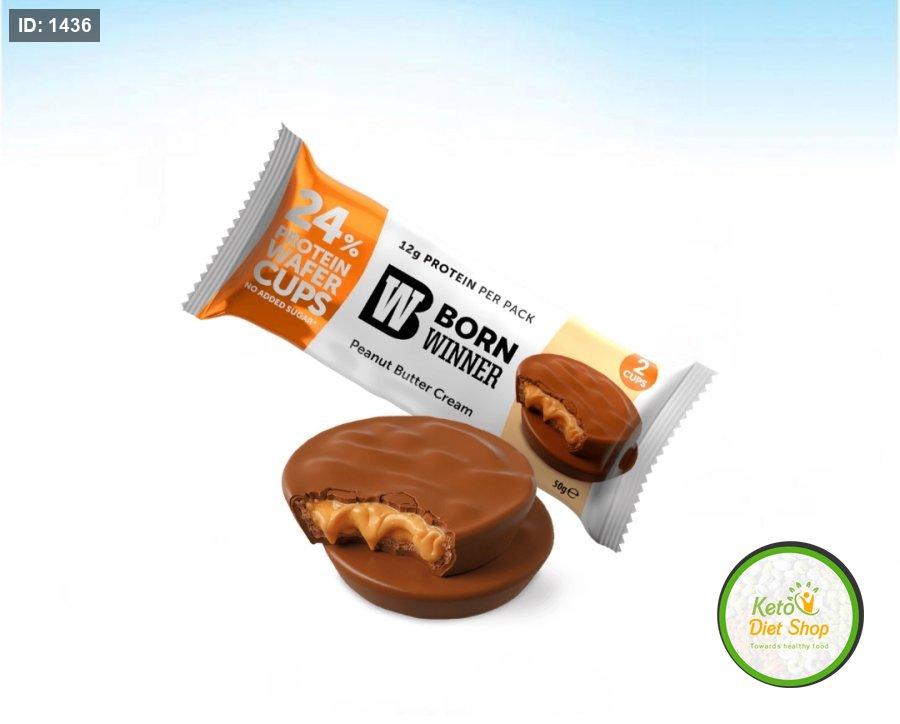 ويفر cups بورن وينر بحشوة كريمه الفول السوداني المغطاه بالشوكلاته 24%بروتين بدون سكر 50غم