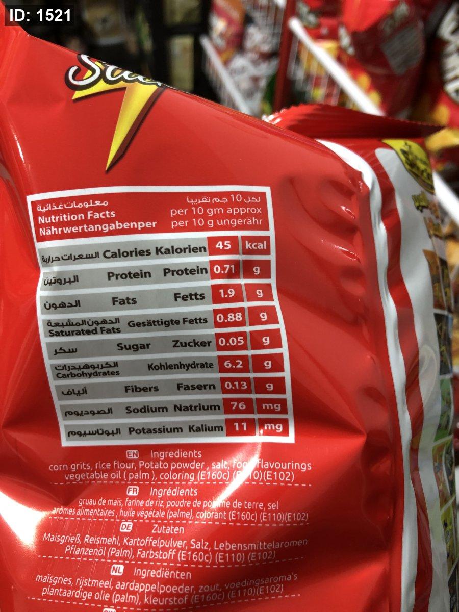 اصابع الذره والبطاطا الهشه والمقرمشه بطعم الكاتشب ✨مخبوزه بالفرن قليله السعرات الحراريه الحصه الواحده فيها فقط 45سعر حراري ✨وزن الكيس عائلي 70غم