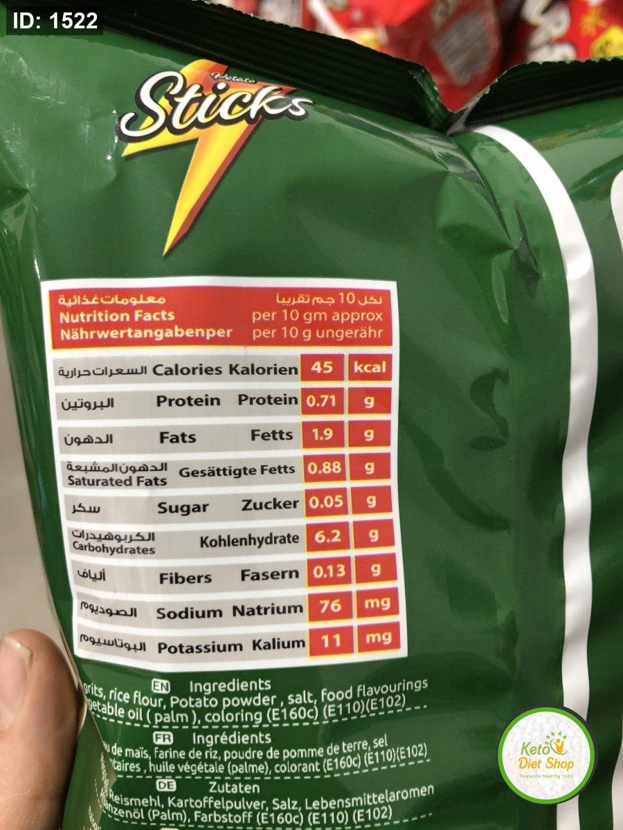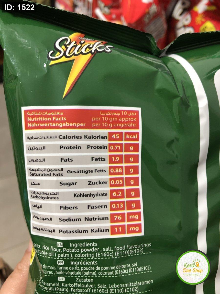 اصابع الذره والبطاطا الهشه والمقرمشه بطعم الشطه والليمون ✨مخبوزه بالفرن قليله السعرات الحراريه الحصه الواحده فيها فقط 45سعر حراري ✨وزن الكيس عائلي 70غم