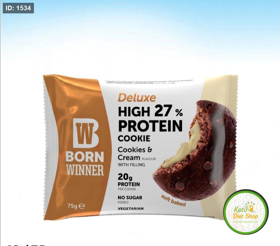 كوكيز بورن وينير ديلوكس 20غم بروتين بحشوة الكوكيز والكريمه بدون سكر 75غم