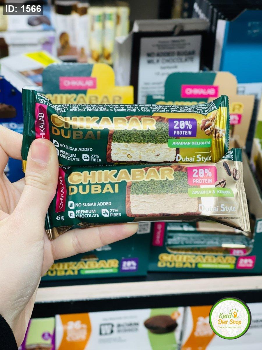 2 بار شوكلاته بحشوه دبي البستاشيو وعجينه الكنافه المقرمشة 20%بروتين بدون سكر