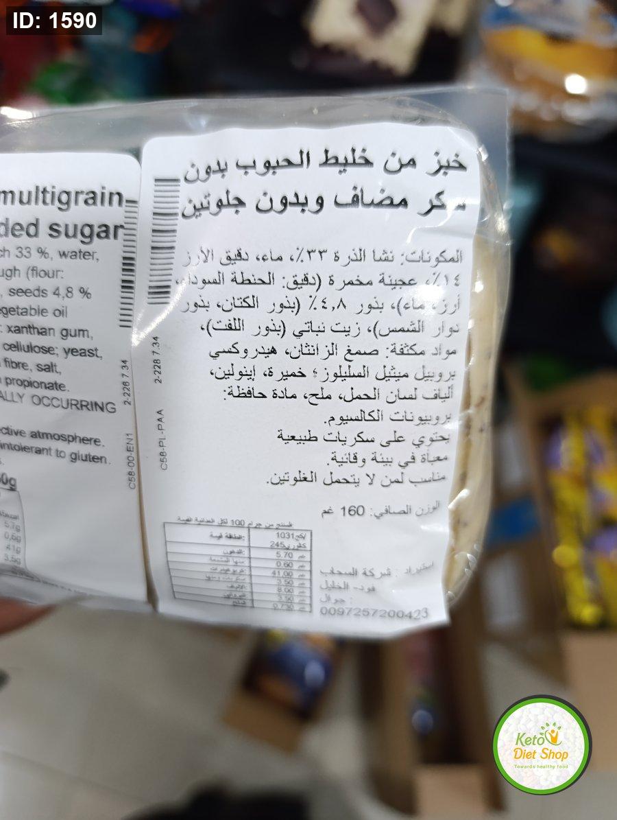 خبز التوست النباتي مع خليط وبذور الكتان وخالي من اللاكتوز خالي من الجلوتين وخالي من السكر 160غم