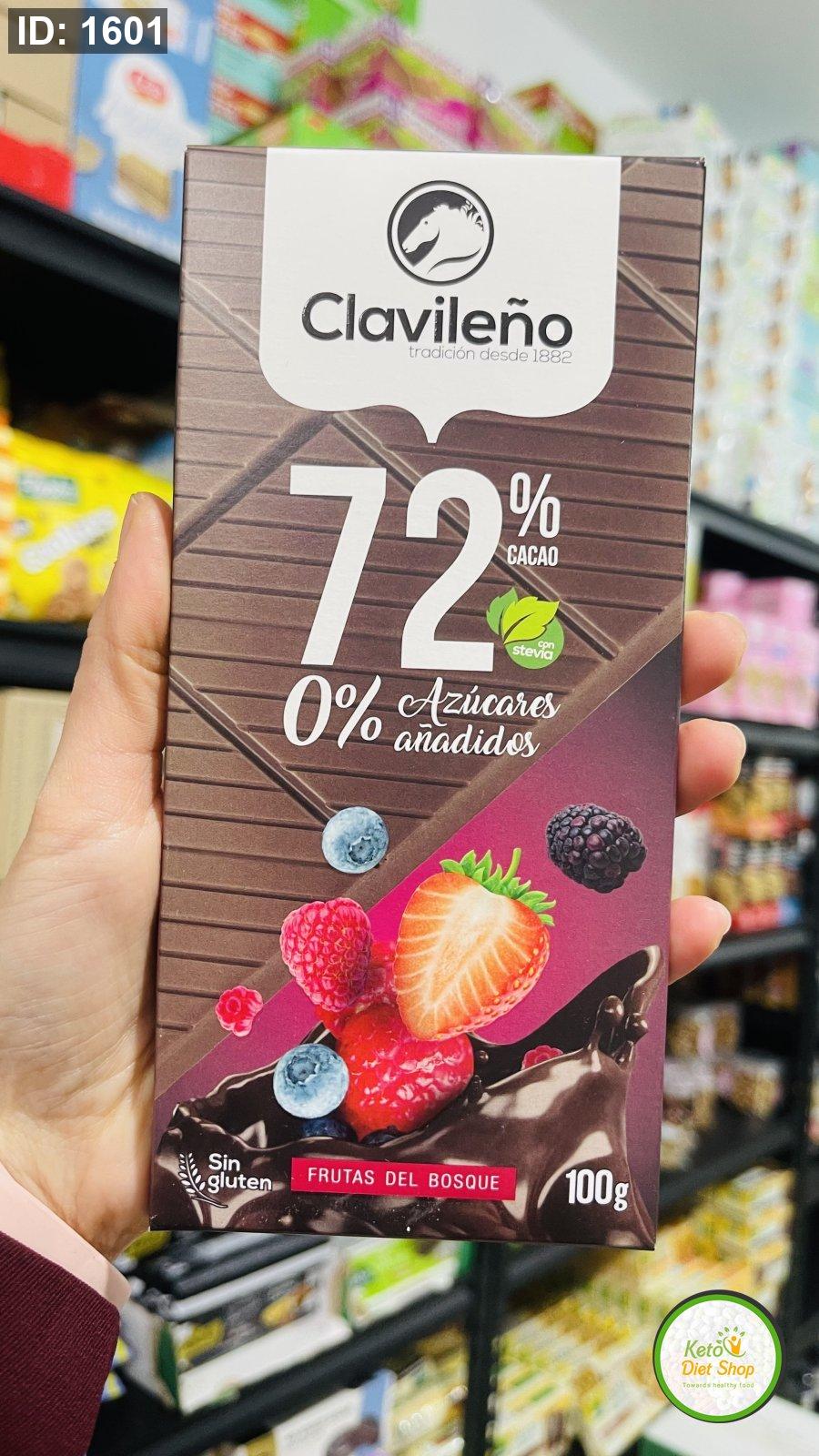 شوكولاته كلافينيلو 72% دارك بقطع الفواكة بدون سكر مضاف وبدون جلوتين