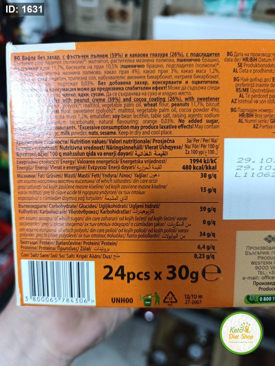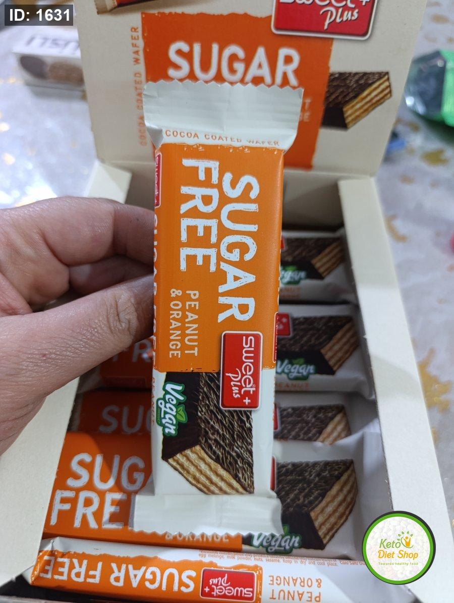 ويفر sweet plus بكريمه الفستق والبرتقال مغطى بالشوكولاته بدون سكر مضاف