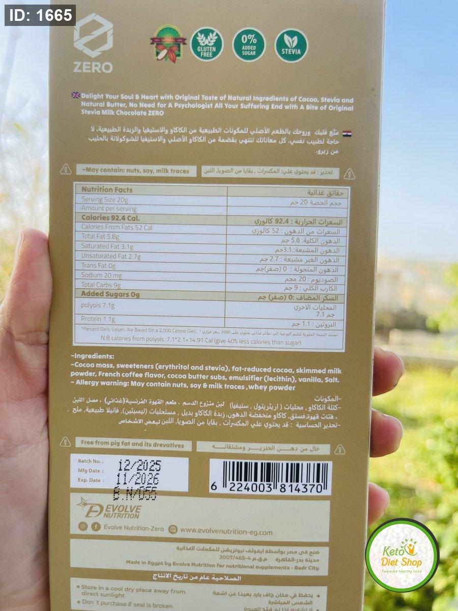 لوح شوكولاته زيرو حليب بالقهوة الفرنسيه محلاه بالاستيفيا 85 غم