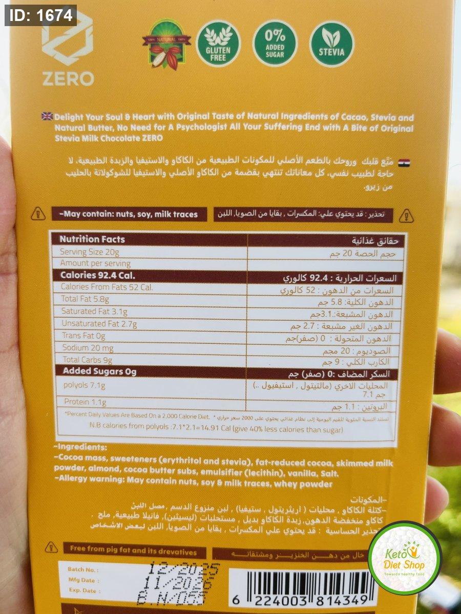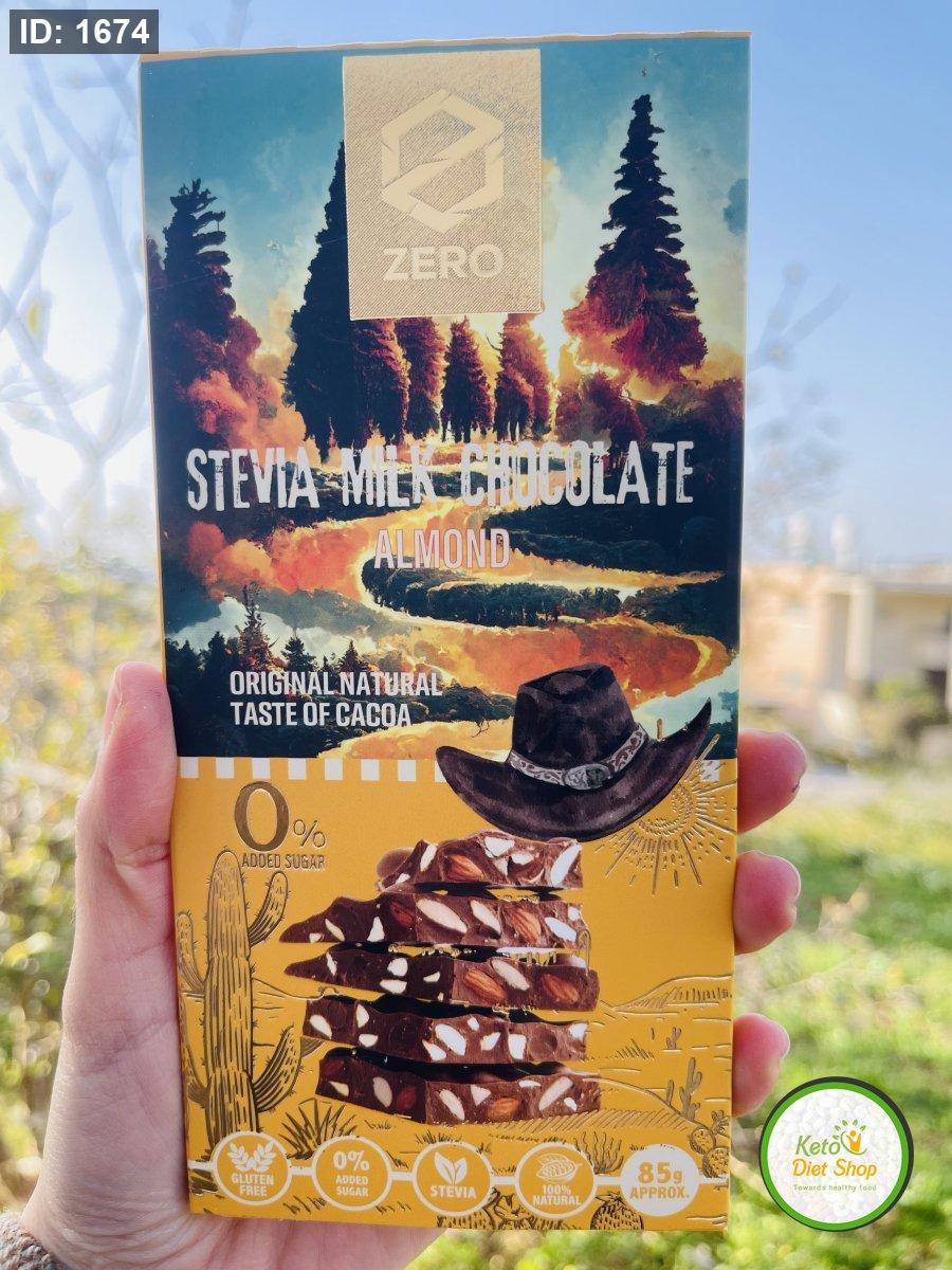 لوح شوكولاته زيرو حليب مع قطع اللوز محلاه بالاستيفيا 85غم