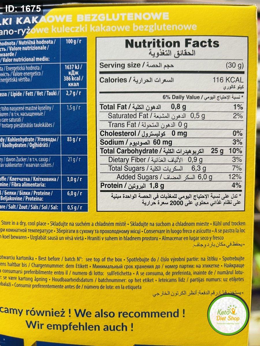 كرات الكاكاو بالذره والارز خالي من الجلوتين 250غم
