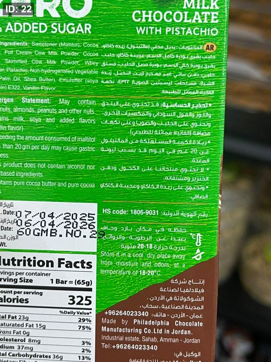 شوكولاته تودي حليب بالفستق الحلبي بدون سكر مضاف