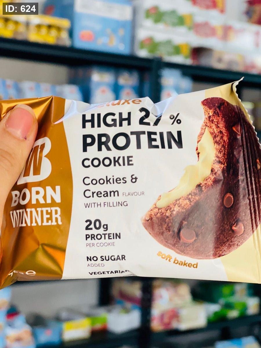 كوكيز بورن وينر بحبيبات الشوكلاته وحشوة الكريما 20غم بروتين بدون سكر مضاف 60غم