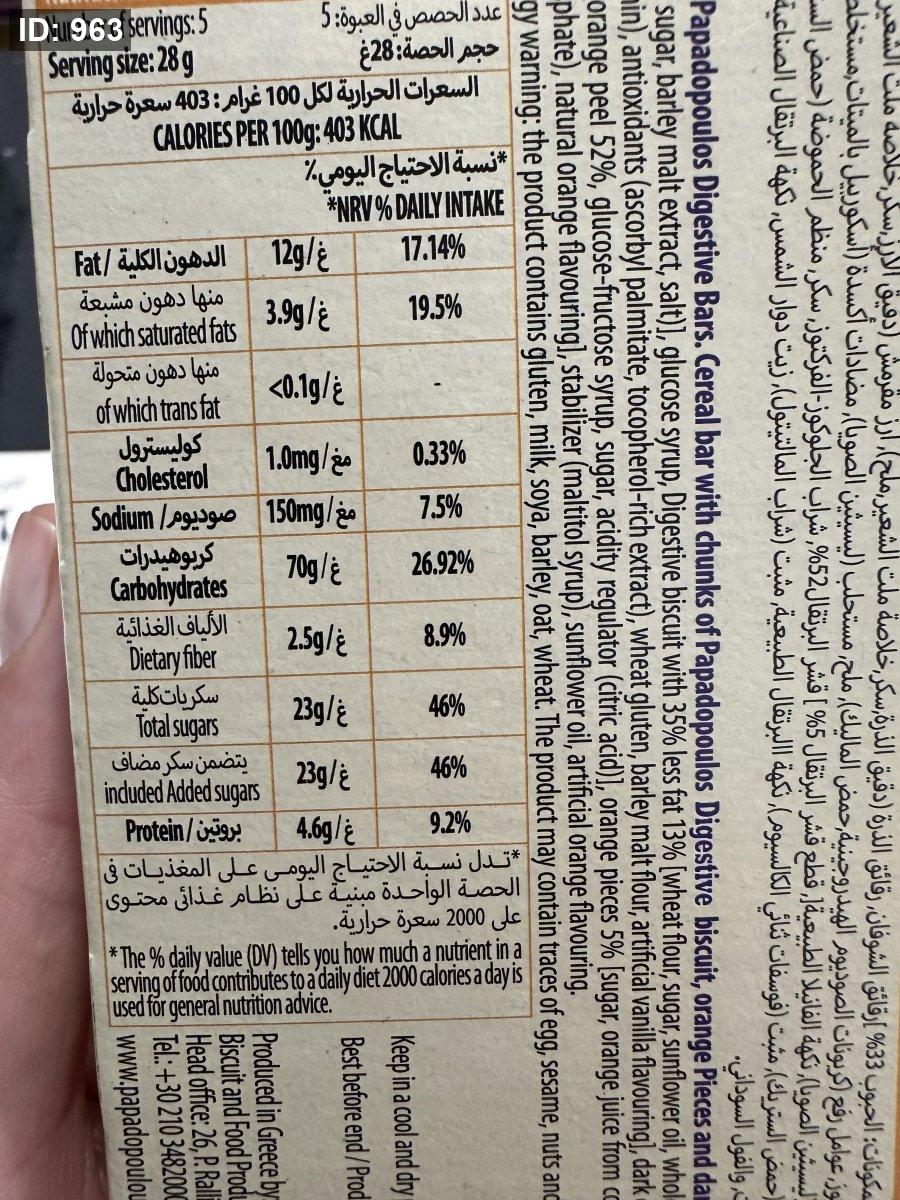 علبة بارات دايجستف القمح الكامل والشوفان مع قطع البرتقال والشوكلاته الدارك