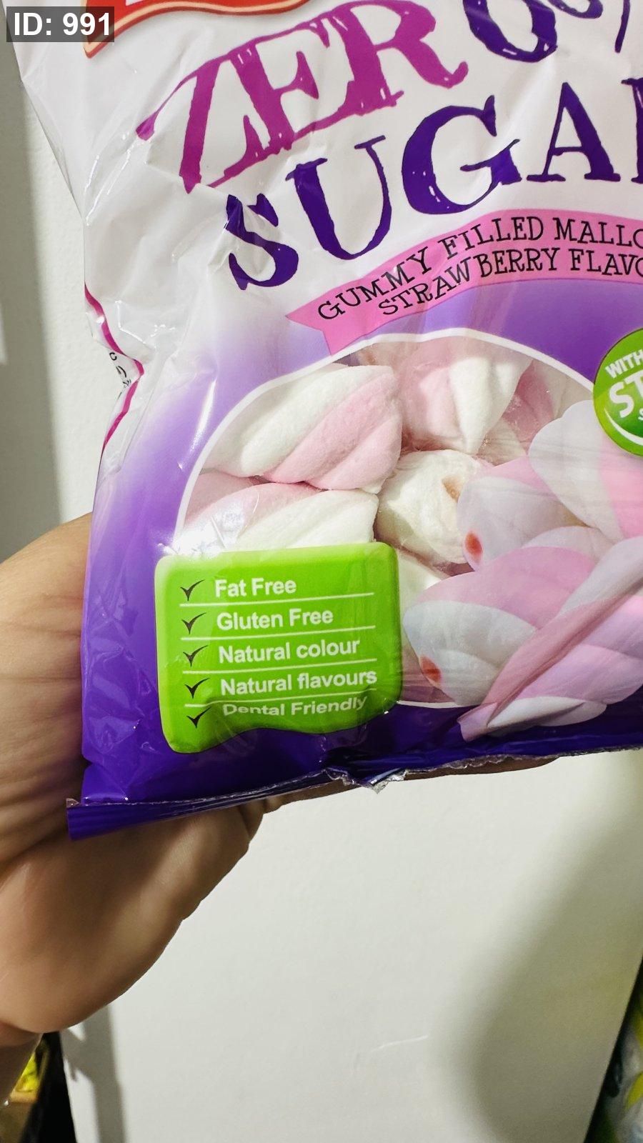 كيس مارشميلو محشي بالفراوله بدون سكر مضاف خالي من الجلوتين
